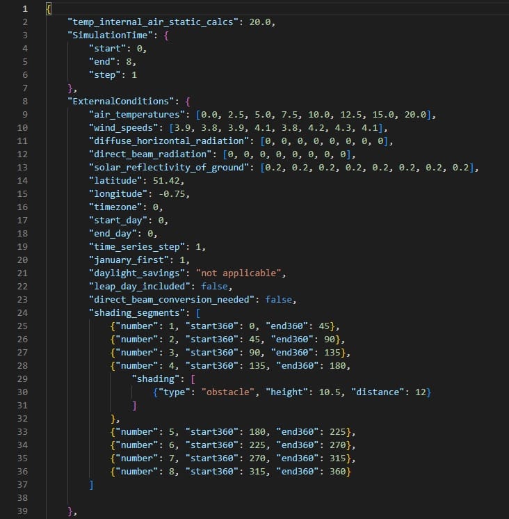 KeyError: 'wind_directions'From looking into the code itself, I could see that the model is expecting the "ExternalConditions" input to contain information on the wind direction. This is missing in the demo.json input file so, correctly, the code raises an error at this point.
